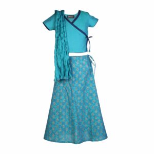 Fabindia Girls Printed Blue Lehenga Choli